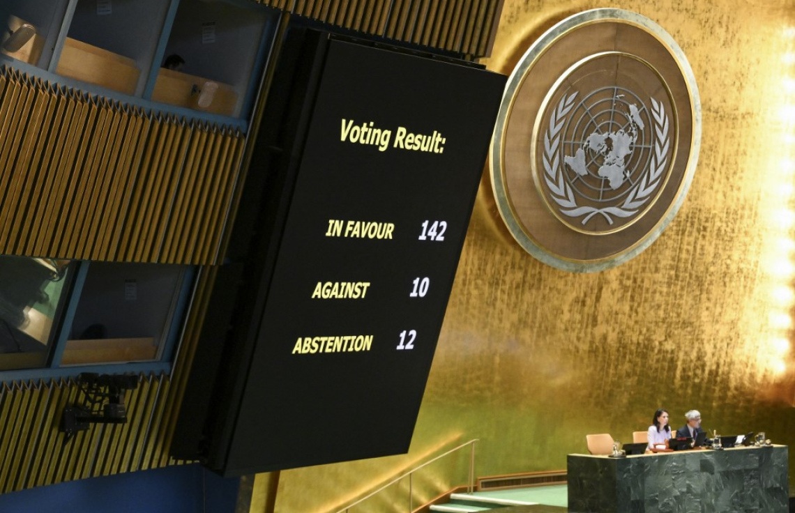 މިއީ ފަލަސްތީނާއި އިޒްރޭލު ވެސް ދައުލަތެއްގެ ގޮތުގައި ބަލައިގަނެ، ފަލަސްތީނުގެ މައްސަލައަށް ދާއިމީ ހައްލެއް ހޯދުމަށް ކުރާ މަސައްކަތުގައި މި ފަހުން ކުރި އެންމެ މުހިންމު މަސައްކަތުގެ ގޮތުގައި ވަނީ ބެލެވިފަ އެވެ.މި ގަރާރު ފާސްކޮށްފައިވަނީ ރާއްޖެ ހިމެނޭ ގޮތަށް 142 ގައުމުގެ ތާއީދާއެކު އެވެ. ގަރާރާ ދެކޮޅަށް 10 ގައުމުން ވޯޓު ދިން އިރު 12 ގައުމަކުން ވަކިކޮޅަކަށް ވޯޓެއް ނުދެ އެވެ. އޮކްޓޫބަރު 7، 2023 ގައި ހަމާސް އިން އިޒްރޭލަށް ދިން ހަމަލާ ކުށްވެރިކުރުމުގައި އދ.ގެ އިދާރާތައް ފެއިލްވެފައިވާ ކަމަށް ބުނެ އިޒްރޭލުން މި ގަރާރާ ދެކޮޅުހަދައި މިއީ ހަމާސްގެ ހަމަލާގެ ބަދަލުގައި ދޭ އިނާމެއްގެ ގޮތުގައި އައީ ސިފަކުރަމުންނެވެ. ނަމަވެސް ފްރާންސާއި ސައޫދީ އަރަބިއްޔާގެ އިސްނެގުމަށް ހުށަހެޅި ގަރާރުގައި ހަމާސް ކުށްވެރިކޮށް އަދި އިޒްރޭލުގެ ހުރިހާ އަސީރުން މިނިވަންކުރުމަށް ވެސް ގޮވާލާފައިވެ އެވެ. މި ގަރާރުގައި ގޮވާލާފައިވަނީ، ފަލަސްތީނުގެ މައްސަލައަށް އިންސާފުވެރި ދެމެހެއްޓެނިވި ހައްލެއް ހޯދުމަށާއި ފަލަސްތީނުގައި މިނިވަން، އިގްތިސޯދީގޮތުން ދެމެހެއްޓެނިވި އަދި ޑިމޮކްރެޓިކް ދައުލަތެއް ބިނާ ކުރުމަށެވެ. އޭގެ ތެރޭގައި ހަމާސްގެ ބައިވެރިވުން ނުހިމެނޭ ގޮތަށް ދައުލަތް ގާއިމުކުރުން ހިމެނެ އެވެ މި ގަރާރު ފާސްކޮށްފައި މި ވަނީ ފްރާންސުން ފަލަސްތީނުގެ ދައުލަތް ބަލައިގަންނާނެ ކަމަށް އެ ގައުމުގެ ރައީސް އެމެނުއެލް މެކްރޮން ވިދާޅުވެފައިވާ، މި މަހުގެ 22 ވަނަ ދުވަހު ބާއްވާ ސަމިޓުގެ ކުރިންނެވެ. ފްރާންސާއި ސައޫދީ ގުޅިގެން އެ ސަމިޓު ބާއްވާއިރު އދ.ގެ އާންމު މަޖިލީހުގައި ފަލަސްތީނުގެ ދައުލަތް ބަލައިގަނެ އެކަން އިއުލާނުކުރާނެ ކަމަށް އެތައް ގައުމަކުން ވަނީ ބުނެފަ އެވެ. މި ގަރާރު ފާސްކުރުމާ ގުޅިގެން ރައީސް ޑރ. މުހައްމަދު މުއިއްޒު ސޯޝަލްމީޑިއާގައި ކުރެއްވި ޕޯސްޓްގައި ވިދާޅުވީ މި ގަރާރަކީ ފަލަސްތީނުގެ މައްސަލަ ހައްލުކުރަން މުހިއްމު ގަރާރެއް ކަމަށާއި ރާއްޖެއިން އަބަދުވެސް އޮންނާނީ ފަލަސްތީނުގެ މިނިވަން ދައުލަތަކަށް ވަކާލާތު ކުރުމުގައި ކަމަށެވެ.މީގެ އިތުރުން ފޮރިން މިނިސްޓްރީން ނެރުނު ބަޔާނެއްގައި ވަނީ ފަލަސްތީނަކީ މިނިވަން ދައުލަތެއްގެ ގޮތުގައި ކަނޑައެޅުމަށް ރާއްޖެއިން ކުރާ ތާއީދު ތަކުރާރުކޮށް ފާހަގަކޮށްފަ އެވެ.