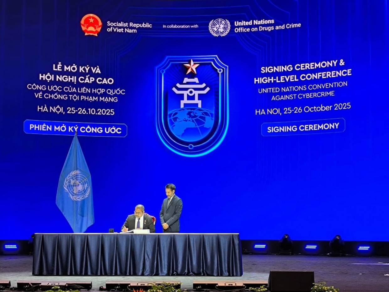 މި މުއާހަދާގައި ރާއްޖެއިން ސޮއިކުރީ ސައިބާ ކްރައިމްއާ ދެކޮޅަށް ވިއެޓްނާމްގެ ހަނޯއީގައި ކުރިއަށްދާ މަތީ ފަންތީގެ ކޮންފަރެންސްގެ ތެރެއިން ރާއްޖޭގެ ފޮރިން މިނިސްޓަރު ޑރ. އަބްދުﷲ ޚަލީލް އެވެ.އެ މުއާހަދާގައި ސޮއިކުރުމުގެ ރަސްމިއްޔާތަށްފަހު ބޭއްވި ބައްދަލުވުމުގައި ތަގުރީރުކުރައްވަމުން ހަލީލް ވިދާޅުވީ އެ މުއާހަދާއަކީ ރާއްޖޭގެ ގައުމީ ޑިޖިޓަލް ސްޓްރެޓެޖީގެ މުހިންމު އެއް ތަނބު ކަމަށެވެ.އޭނާ ވިދާޅުވީ 2030 ވަނަ އަހަރު އަންނަންވާއިރަށް، ރާއްޖޭގެ އިގްތިސާދުގެ 15 ޕަސެންޓަކީ ޑިޖިޓަލް ދާއިރާ ކަމަށް ހެދުން ސަރކާރުގެ ލަނޑުދަނޑިއެއްގެ ގޮތުގައި އެބަ އޮތް ކަމަށެވެ. އަދި ސަރުކާރުގެ "މޯލްޑިވްސް 2.0" އަކީ ރައްޔިތުންނަށް އަމާޒުކޮށްގެން ހިންގާ ޑިޖިޓަލް އިކޯސިސްޓަމެއް ގާއިމްކުރަން އެކުލަވާލާފައިވާ ތަަސައްވުރެއް ކަަން ވެސް މިނިސްޓަރު ފާހަގަކުރެއްވި އެވެ.ތަރައްގީވަމުން އަންނަ ކުދި ޖަޒީރާ ގައުމުތަކަށް ޓެކްނިކަލް ގާބިލުކަން ކުޑަވުމުގެ ސަބަބުން ސައިބަކްރައިމްގެ ނުރައްކާތައް ބޮޑު ނަމަވެސް، މި ގޮންޖެހުންތަކަކީ ދިވެހިރާއްޖޭން ކުރާ މަސައްކަތް ހީނަރުވާނެ ކަމެއް ނޫން ކަމަށް ހަލީލު ވިދާޅުވި އެވެ.ރާއްޖޭގައި އިންޓަނެޓް މެދުވެރިކޮށް ކުރާ ކުށްތައް ނުވަތަ ސައިބާ ކްރައިމް ހުއްޓުވުމަށްޓަކައި ސައިބާ ސެކިއުރިޓީ ސެންޓަރެއް މިދިޔަ އޮގަސްޓު މަހުގެ ތެރޭގައި ވަނީ ހުޅުވާފަ އެވެ.
