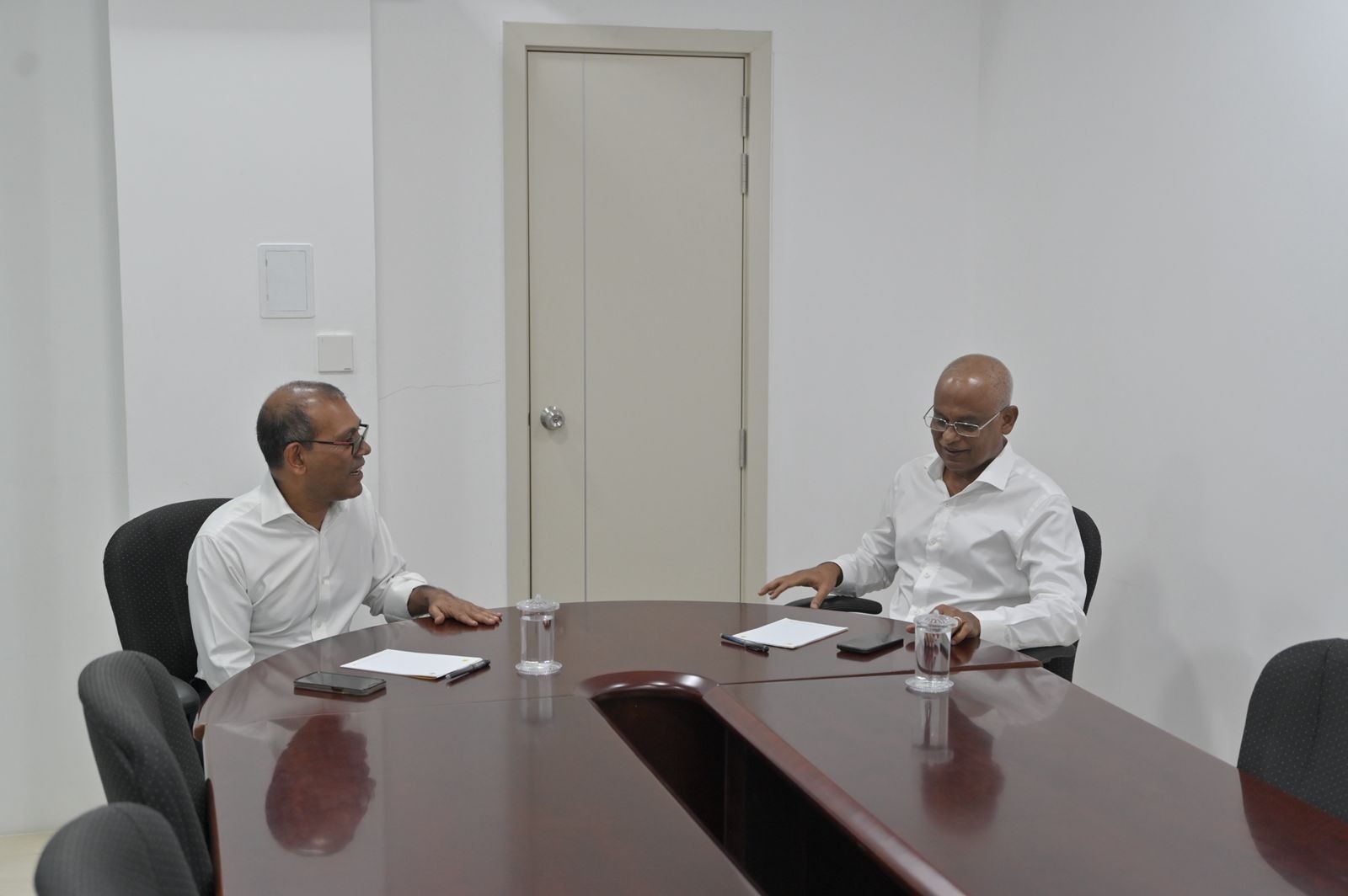އެމްޑީޕީގެ ރިޔާސީ ޓިކެޓާއި އެ ނޫން ވެސް ހިޔާލުތަފާތުވެފައިވާ ކަންކަމުގައި ވާހަކަ ދައްކަވަން ސޯލިހާއި ނަޝީދު މިއަދު ވަނީ ބައްދަލުކުރައްވައިފަ އެވެ. ސޯލިހު އާއި ނަޝީދު ބައްދަލުކުރައްވަން ނިންމަވާފައި މި ވަނީ، އެމްޑީޕީގެ އެތެރޭގައި އުފެދުނު ހިޔާލުތަފާތުވުންތަކުގައި ޕާޓީ ދެފަޅިވެ ދަ ޑިމޮކްރެޓްސްގެ ނަމުގައި އައު ޕާޓީއެއް އުފައްދައިގެން ސިޔާސީ މަސައްކަތްތަކެއް ކުރެއްވުމަށްފަހު ނަޝީދު އާއި އެމަނިކުފާނުގެ އަރިސް ބޭފުޅުން އަލުން އަނބުރާ އެމްޑީޕީއާ ގުޅިވަޑައިގެންފައި ވަނިކޮށެވެ.އެ ބައްދަލުވުމަށް ފަހު ދެ ބޭފުޅުން ވަނީ ނޫސްވެރިންނާ ބައްދަލުކުރައްވައި، ޕާޓީގެ ބައެއް ކަންތައްތަކާ ބެހޭ މައުލޫމާތު ހިއްސާކުރައްވައިފަ އެވެ.އެ ބައްދަލުވުމުގައި ސޯލިހު ވިދާޅުވީ ސަރުކާރު ޒިންމާދާރު ކުރުމުގައި އެމްޑީޕީއިން ކުރާ މަސައްކަތްތަކުގައި އެމަނިކުފާނާއި ނަޝީދުގެ ދައުރު މިހާރަށް ވުރެ ފުޅާކޮށް، އިތުރު މަސައްކަތްތަކެއް ވެސް ކުރަން ނިންމާފައިވާ ކަމަށެވެ."އޭގެ ތެރޭގައި އިތުރަށް އަޅުގަނޑުމެންނާ އެކީ މަސައްކަތް ކުރެވޭނެ ފަރާތްތަކެއް އެބަހުރި. އެއީ މިސާލަކަށް އަޅުގަނނޑުމެން ނޫނަސް ކުރިން ރައީސްކަން ކުރެއްވި ބޭފުޅުން އެބަތިއްބެވި. އެ ބޭފުޅުންނާ އެކީ ވެސް މި ސަރުކާރު ޖަވާބުދާރީ ކުރުމަށްޓަކައި ކުރަން ޖެހޭ ކަންތައްތައް އެ ބޭފުޅުންނާ މަޝްވަރާކޮށްގެން ކުރިއަށް ގެންދިއުން،" ސޯލިހު ވިދާޅުވި އެވެ."ޔާމީންއާ އެކީގައި ވެސް އަޅުގަނޑުމެންނަށް މަސައްކަތް ކުރެވޭނެ،" ސޯލިހު ވިދާޅުވި އެވެ."ރައީސް މައުމޫންގެ އަރިހުގައި ވެސް އަޅުގަނޑުމެން މަސައްކަތް ކުރިން ނޫންތޯ،" ސޯލިހުގެ ވާހަކަފުޅަށް ތާއީދުކުރައްވައި، ނަޝީދު ވިދާޅުވި އެވެ.މިއަދު ބޭއްވި ނޫސްވެރިންގެ ބައްދަލުވުމުގައި ނަޝީދާއި ސޯލިހު ވެސް ވަނީ، ރިޔާސީ އިންތިހާބުގެ ކެންޑިޑެސީގެ ވާހަކަ ދެއްކުން މިވަގުތަށް މަޑުޖައްސާލައިފައި ބާއްވަން ދެ ބޭފުޅުން އެއްބަސްވެވަޑައިގަންނަވާ ކަމަށް ވިދާޅުވެފަ އެވެ.
