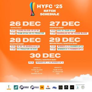 އެގޮތުން މިއަދު ހަވީރު ކުޅޭ ފުރަތަމަ މެޗުގައި ބައްދަލުކުރާނީ ހޯރަފުށީ 22 ސްޕޯޓްސް ކްލަބް އާއި ދިއްދޫ ބާރަލާ ސްޕޯޓްސް އެވެ. އަދި އެ ދެ ވަނަ މެޗުގައި ބައްދަލުކުރާނީ ހޯރަފުށީ އެފްސީ ފްރޮގޭޓާރ އާއި އިހަވަންދޫ އެންވީކޭ އެވެ. މި މަހު 26 އިން 30 ނިޔަލަށް ކުރިއަށްދާ މި މުބާރާތުގެ ޗެންޕިއަން ޓީމަށް 10000 ރުފިޔާގެ ފައިސާގެ އިނާމެއް ދިނުމަށް ވަނީ ހަމަޖެހިފަ އެވެ. މި މުބާރާތުގެ ގްރޫޕް ސްޓޭޖްގެ މެޗުތައް މިއަދު ނިމޭނެ އެވެ. މި މުބާރާތުގެ ސެމީ ފައިންލްގެ މެޗްތައް މާދަމާ އޮންނައިރު ފައިނަލް ކުޅޭނީ 30 ވަނަ ދުވަހު ގެ ރޭ 20:30 ގައި އެވެ.މި މުބާރާތް ބޭއްވުމުގެ މަގުސަދަކީ ފުޓްސަލް ކުޅޭ ޒުވާނުންގެ ހުނަރު ދައްކާލައި، ހުނަރު އިތުރަށް ތަރައްގީކޮށް ފުޓްސަލްއިން ރަނގަޅު މުސްތަގުބަލެއް ހޯދައިދިނުމާއި، ކުޅުންތެރިން އަދި ފުޓްސަލް ޓީމްތައް އުފެއްދުމުގެ މަސައްކަތް ކުރާ އަމިއްލަ ފަރާތްތަކުގެ މެދުގައި ކުޅިވަރުގެ ތެރެއިން އެކުވެރިކަން ބަދަހިކުރުމާއި، އެންމެންނަކީ ވެސް ސިއްހީ ގޮތުން ދުޅަހެޔޮ ބަޔަކަށް ހެދުމެވެ.