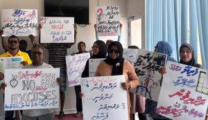 އެކި ޝުއޫރުތަައް ލިޔެފައިވާ ޕޯސްޓަރުތައް ހިފައިގެން ފެނަކަ އޮފީސް ކައިރީގައި މިއަދު އާންމުން ކުރަމުންދާ އިހުތިޖާޖުގައި ބުނަމުންދަނީ ކަރަންޓު ބިލުން "ރައްޔިތުން ނޮޅާލައިފި" ކަމަށެވެ. ފާހަގަކޮށްލެވޭ ގޮތުގައި މިދިޔަ މަހުގެ ކަރަންޓު ބިލު ބޮޑުވެގެން ސްޓެލްކޯގެ ކަސްޓަމަރުންނާއި، ފެނަކައިގެ ޚިދުމަތް ހޯދާ ރައްޔިތުން ވެސް އަންނަނީ ކަންބޮޑުވުން ފާޅުކުރަމުންނެވެ.ކަރަންޓު ހިދުމަތްދޭ ކުންފުނިތަކުން ބުނަނީ މި ދުވަސްވަރު ކަރަންޓު ބިލުތައް ބޮޑު ވަނީ ގޭބިސީތަކުގައި ކަރަންޓު ބޭނުންކުރާ މިންވަރު އިތުރުވާތީ އެވެ. މި ދުވަސްވަރު އެންމެ ބޮޑަށް ކަރަންޓު ބޭނުންކުރަނީ ގޭތެރެ އާއި ކޮޓަރިތައް ފިނިކުރަން ބޭނުންކުރާ އެއާ ކޮންޑިޝަނާ (އޭސީ) ތަކެވެ.